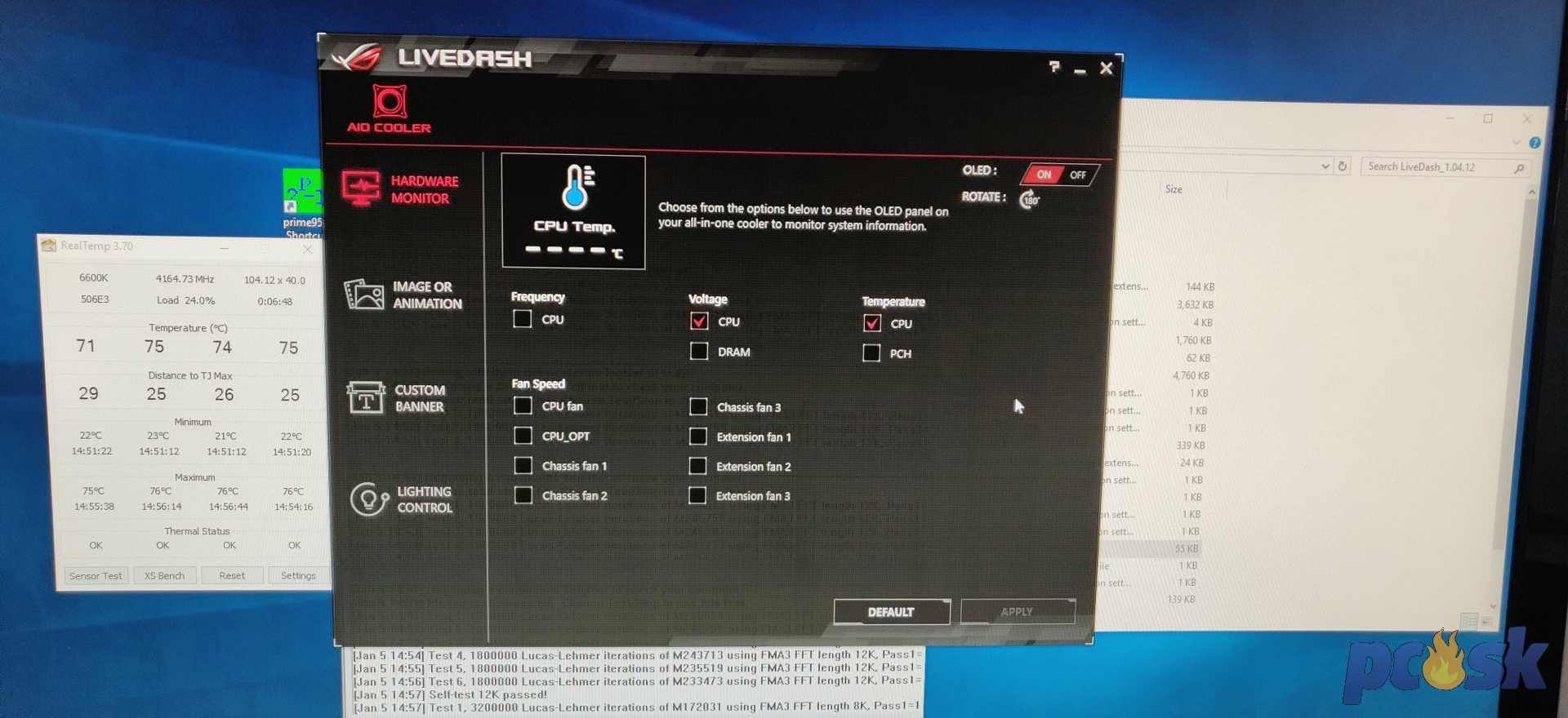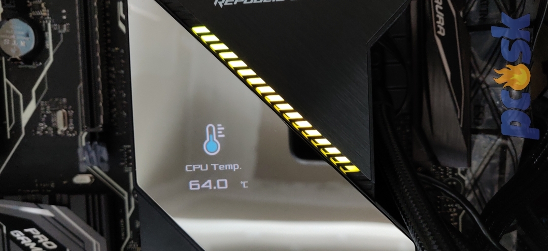 Malý LCD displej dokáže zobraziť niekoľko údajov pomocou Asus LiveDash: teplotu CPU, PCH, napätie CPU a RAM, frekvenciu CPU či otáčky ventilátorov. Ak takýmto spôsobom nechcete sledovať údaje, môžete si na LCD displeji napríklad zobraziť vlastný obrázok alebo banner. Ovládať môžete samozrejme aj podsvietenie.
