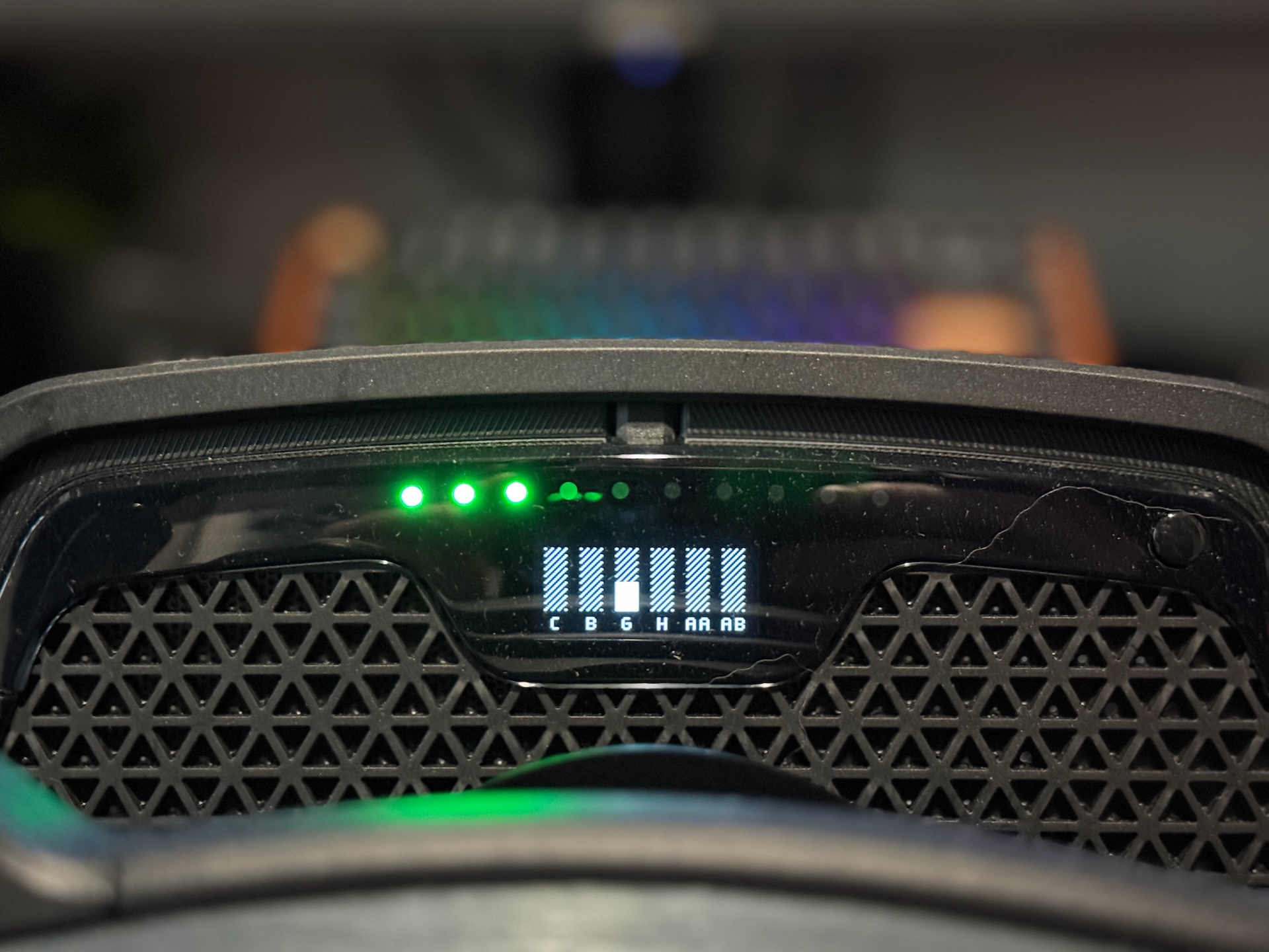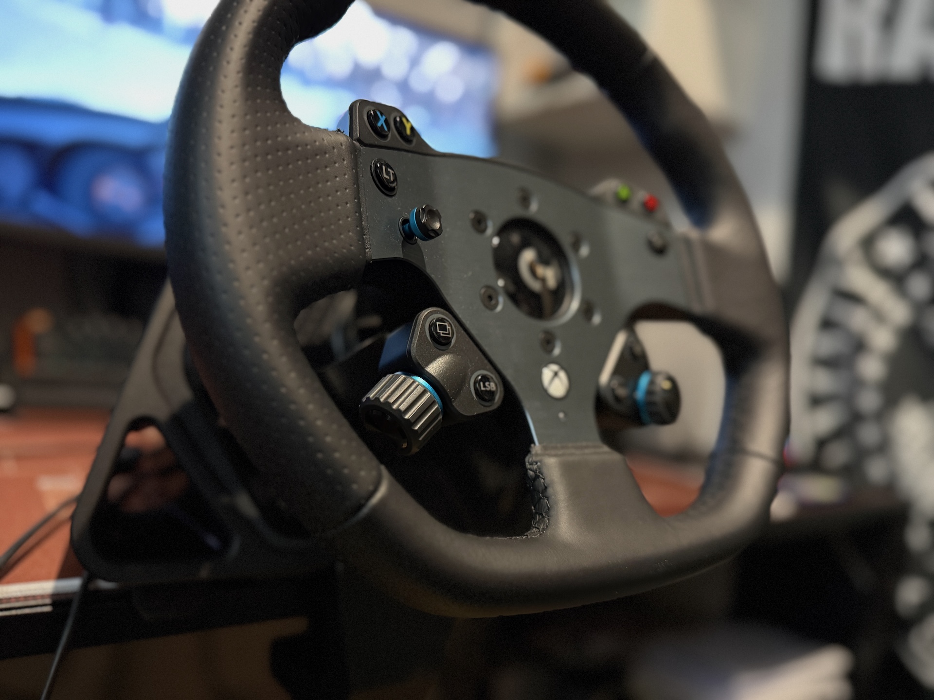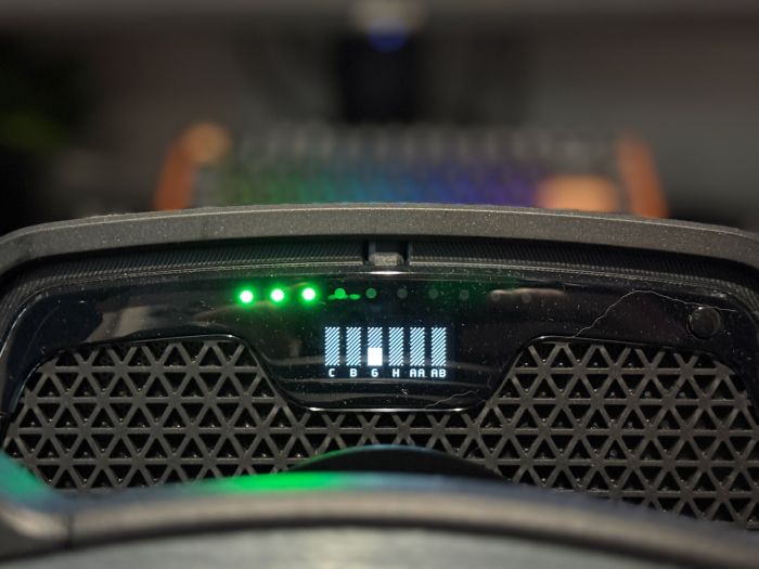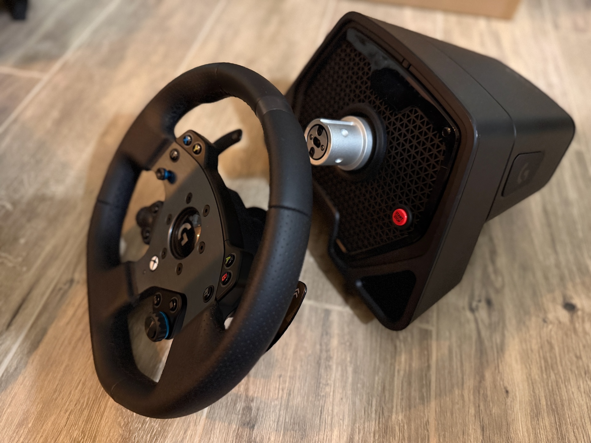 Základňa má malý OLED displej, ktorý ukazuje otáčky motora a celú radu tlačidiel a otočných voličov – všetko je v pomerne dobrom dosahu palcov bez nutnosti púšťať volant – áno nie na všetky tlačidlá dosiahnete bez nutnosti pustiť volant ale tie najhlavnejšie sú na dosah.  V praxi to znamená hlavne to, že si počas jazdy viete meniť napríklad silu trakčnej kontroly, ABS, mapu motora alebo priamo spôsob, akým sa správa force feedback - bez nutnosti nastavovať toto všetko cez menu hry.