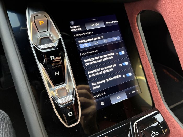 Obrazovka s nastavením auta a aj samotná prevodovka je na dosah pravej ruky na štvrtom displeji. Práve tu si viete nastaviť jednotlivé funkcie auta, vrátane bedrovej opierky, ambientného osvetlenia, launch control atd...