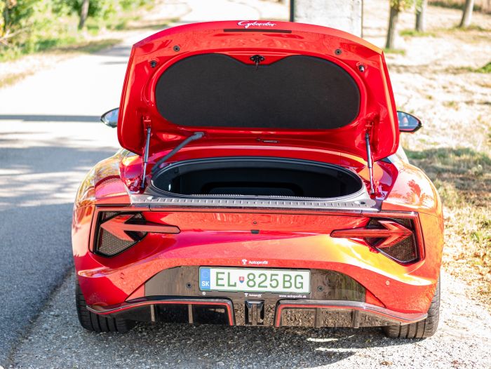 Cyberster má vďaka dvom elektromotorom, mierne obmedzený batožinový priestor, ktorý sa nachádza len v zadnej časti. Pre mňa je tento batožinový priestor pre dvoch ľudí dostatočný a na nejakú týždňovú dovolenku úplne dostatočný - na litre to je 249l.