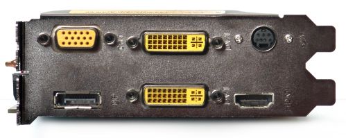 Na karte Zotac 9600GT s kompletným označením ZT-96TES3D-FSP-512D3 sa okrem štandardných dvoch DVI výstupov a jedného TV-Out nachádza aj jeden analógový VGA, HDMI a aj nový DisplayPort.