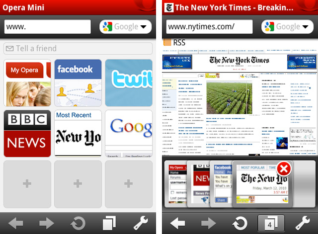 Novinky ešte viac približujú surfovanie na telefónoch tomu, aké poznáme zo stolných PC či notebookov. Prehliadače Opera napríklad podporujú karty (tabbs) pre prehliadanie viacerých stránok zároveň, populárny SpeedDial so zoznamom obľúbených stránok, plnú podporu multitouch, záložky, históriu, vyhľadávanie na stránkach. Nový je aj manažér hesiel, so svojou Operou na PC si môžete tú mobilnú synchronizovať cez Opera Link, zrýchlenie surfovania sľubuje technológia kompresie na strane servera - Opera Turbo.