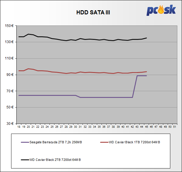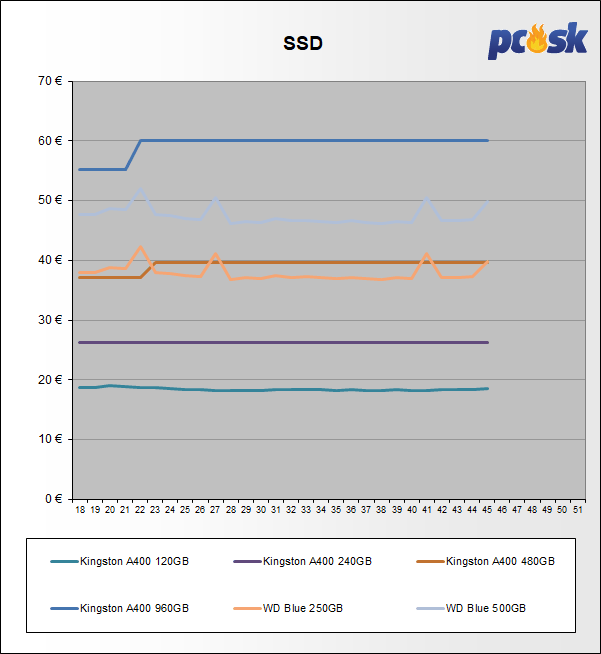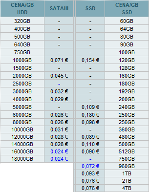 Najlepšie ceny za 1GB diskovej kapacity sú nasledovné: SATAIII 16TB a 18TB, SSD 960GB.