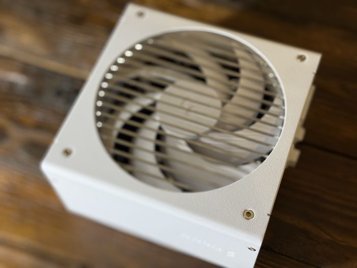 Na chladenie komponentov využíva zdroj 140mm ventilátor Momentum s FDB ložiskom a voliteľným režimom Zero‑RPM - pri nízkej záťaži sa ventilátor netočí. Zdroj má certifikáciu 80 PLUS Gold, prémiové japonské kondenzátory s teplotnou odolnosťou 105 °C.