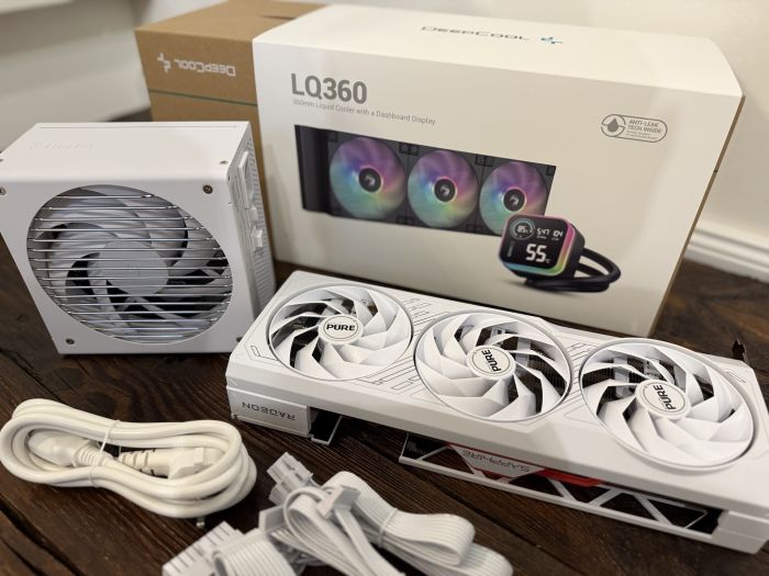 Celú zostavu doplnia RAMky s bielym podsvietením a čiastočne čiernu dosku doplní zase AIO chladič LQ360 z dielne Deepcool.