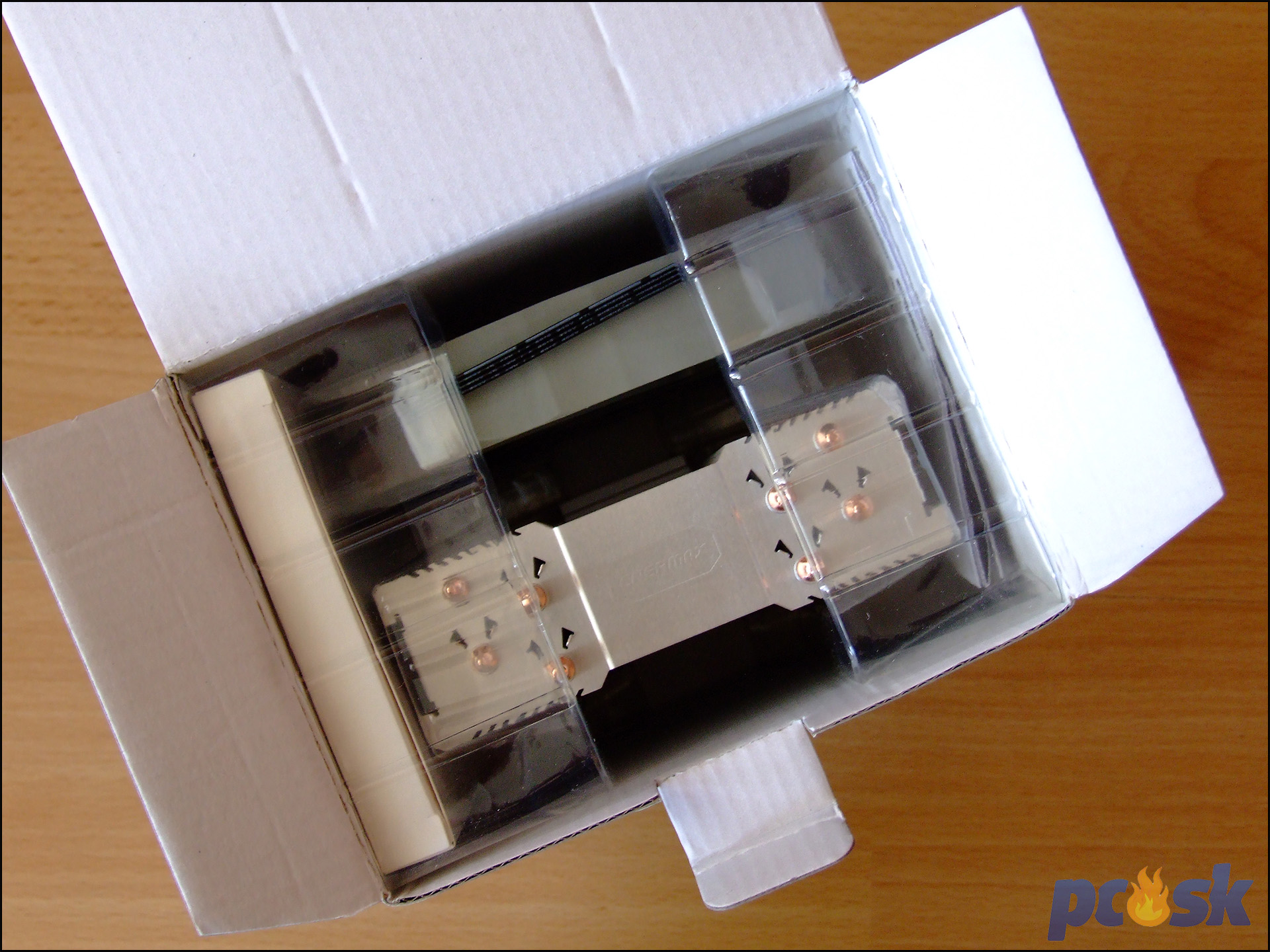 Kartónová krabica ukrýva chladič, ktorý je vložený medzi dvojicu plastových obalov. Niekto môže namietať, že chladič nie je dostatočne chránený, tieto plastové obaly však napevno obkolesujú chladič, ktorý tak nemá priestor na pohyb v krabici a obsahujú aj vzduchové medzery, ktoré predstavujú určitú rezervu pre stlačenie krabice. Ochrana tak nevyzerá najlepšie, svoj účel by však mala poctivo splniť.