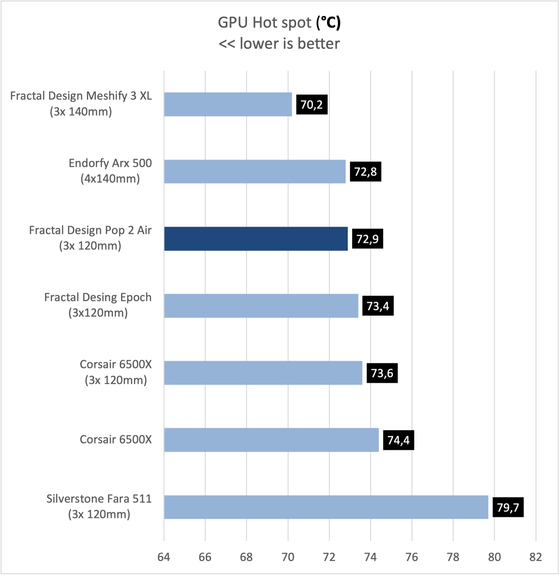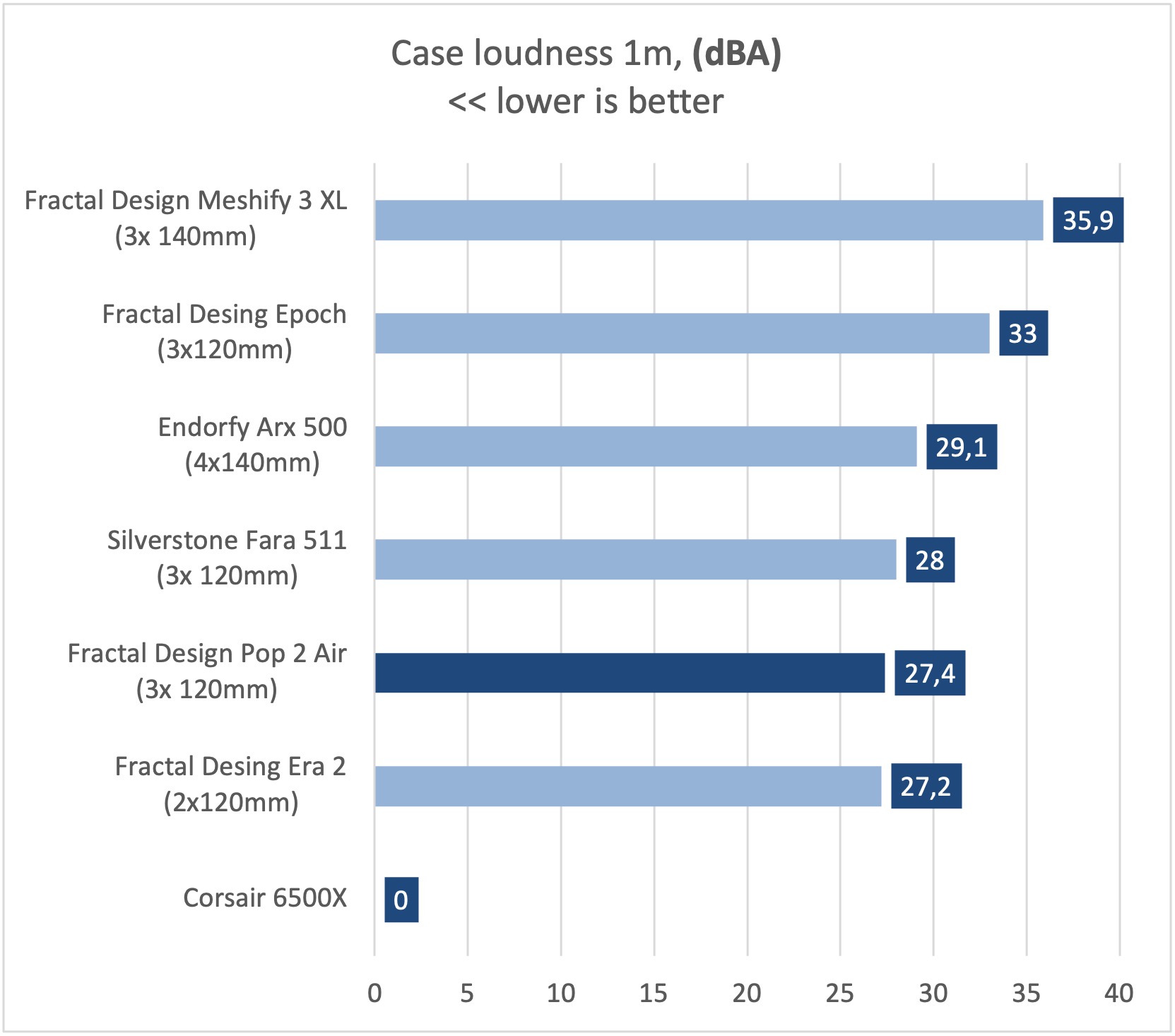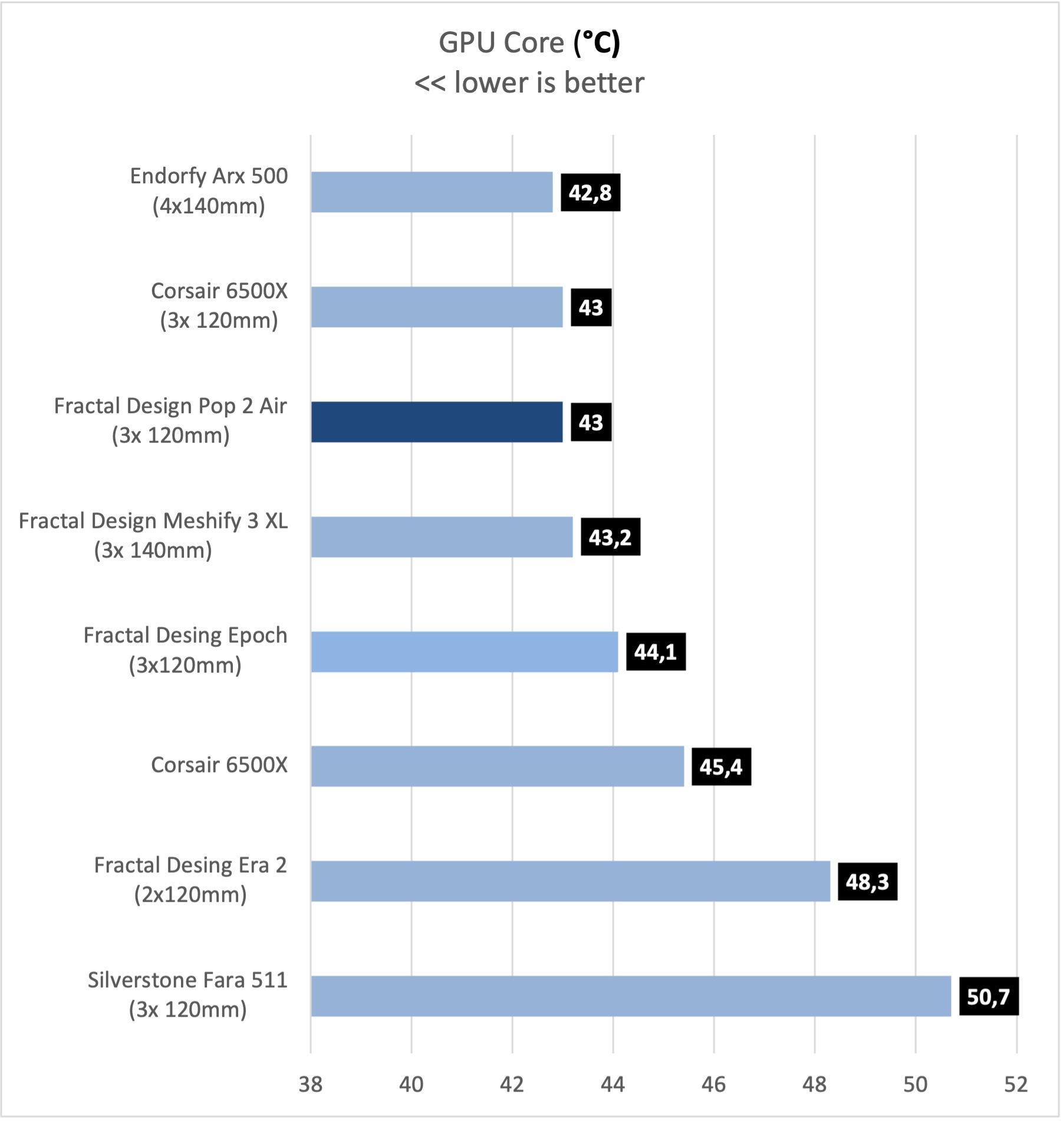 Prvé čo musím povedať je, že sú ventilátory v Pop 2 Air naozaj tiché a pri 700RPM ich nebudete ani počuť. Celkové výsledky sú na veľmi dobre úrovni a podobné tým, ktoré sme videli u skrinky Epoch.