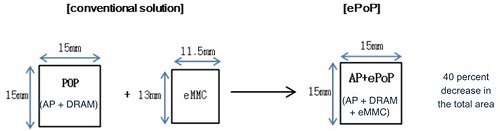 Kórejská spoločnosť Samsung začala masovú produkciu nových pamätí ePoP (embeded package on package), ktoré kombinujú RAM a interné úložisko v jednom balení.
