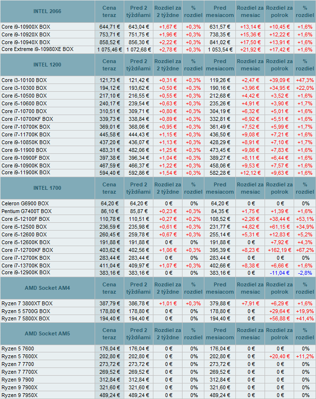 Ceny procesorov sa zvýšili len mierne do +0,3%. Z prehľadu vypadol Ryzen 5 5600G BOX (AM4).