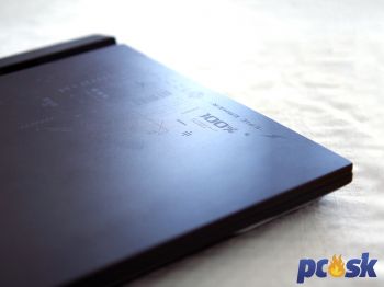 Hĺbka takmer 26 cm nepatrí medzi najmenšie spomedzi 15,6“ notebookov, čo je vidno už na mechanizme otvárania obrazovky, ktorý je umiestnený ďalej od zadného okraja notebooku. Aspoň veko obrazovky je vyrobené z hliníka, vďaka čomu sa podarilo minimalizovať jeho hrúbku.
