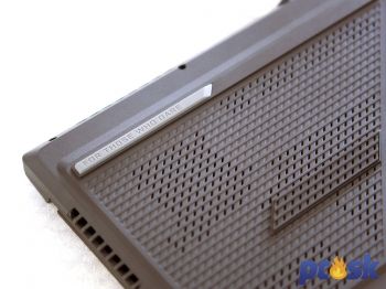 Spodná strana okrem otvorov reproduktorov a chladenia obsahuje aj niekoľko zaujímavostí. Provou je tu slogan výrobcu ROG – for those who dare, ktorý je súčasťou protišmykovej nožičky. Tou druhou sú čísla 18-15-07 a 06/06. Skalní fanúšikovia značky iste vedia, čo tieto čísla znamenajú.