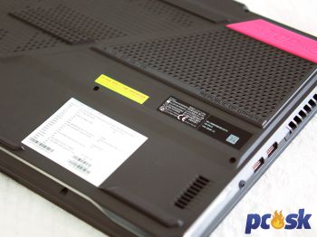Rozmiestnenie konektorov je na ľavej a zadnej strane notebooku. Pravá strana je úplne prázdna a nachádzajú sa tu iba otvory na chladenie. Jednoducho, pri hernom notebooku sa už akosi počíta s častým používaním myši a konektor na pravej strane by tak iba zavadzal.