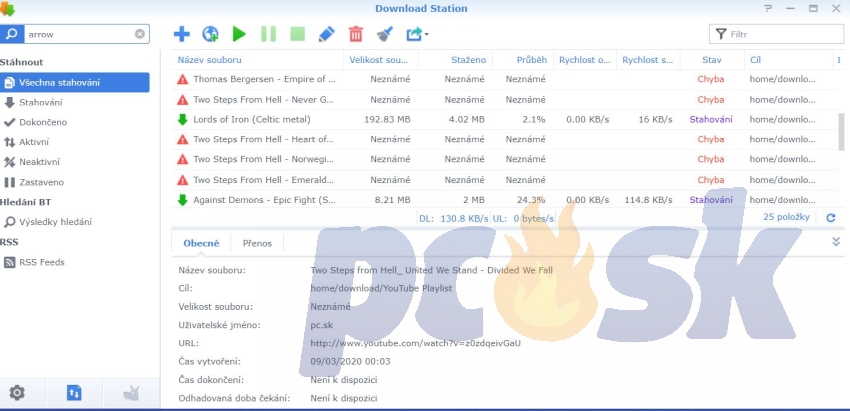 Download Station inak aj po 4 rokoch stále podporuje vyhľadávanie na torrentových stránkach, čo je pre mňa celkom prekvapivý fakt. Vyhľadávacie servery si môžeme pridať, predvolené sú inak 3. Video Station vie sťahovať z: http, https, ftp, ftps, sftp, magnet linkov, thunder, flashget a qqdl. Zaujímalo ma ako si poradí s linkami s Youtube. Funguje to, bohužiaľ nie na všetky videá! A to dokonca aj keď máte vytvorený zoznam prehrávaných videí. Rýchlosť sťahovania z Youtubu, je ako si môžete tipnúť – nízka. Nebol som však schopný identifikovať na základe akého kľúča sú videá linky funkčné alebo nie.